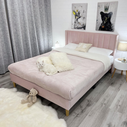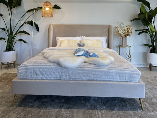 "CLOUD" Bed Frame -Soft white Teddy Fabric